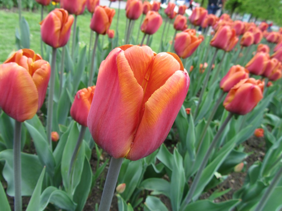 The hundreds of varieties of tulips in neat flowerbeds ran from the palest bridal pinks, cheery sunny yellow, voluptuous reds, bright corals to brooding smoky amethyst.